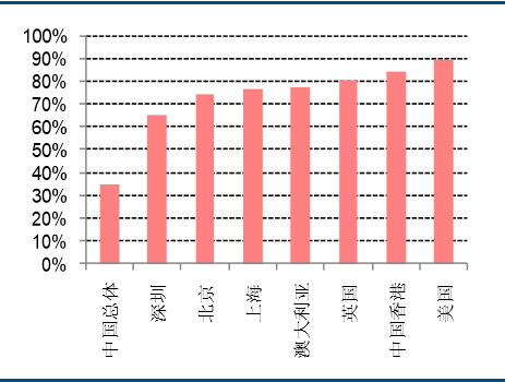 中国已经逐渐进入存量房市场占重要角度的阶段,目前深圳、北京、上海的的二手房交易占总交易量比均超过70%,与澳大利亚、美国等国家的的二手房占比接近,但中国总体的二手房交易占比仅有30%-40%,我们认为,随着存量市场交易份额将持续扩大,二手经纪业务将具有广阔的市场空间。