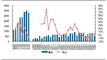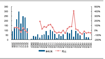 15年需求低迷致收入负增长,毛利率下降叠加费率提升进一步拉低业绩表现。15年整个下游都处于去库存过程中,产业链开工较弱,因此上游建材表现也较为低迷,从wind统计的上市企业来看:调查报告行业收入同比下降6.2%,较同期大幅回落10个百分点;毛利率下降2.1个百分点至22.6%,主因需求不济产品价格呈现单边下跌走势;费率提升2.4个百分点至历史高位17.1%;全年行业实现净利润121亿,同比下降48%。