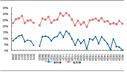 建材行业毛利率和净利率情况:15年毛利率、净利率均出现下滑