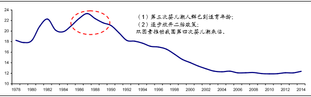 1978年至今中国出生率(%)