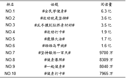 在互联网+的时代,体育通过社交媒体的传播不断扩大自己的影响范围和深度。用户在网上浏览各种体育相关新闻,在社交媒体上和体育明星进行互动。这些行为使得全民健身的概念深入人心,人们越来越倾向于参与到运动中去,并且通过微博、微信等平台加入到全民健身中去,分享运动体会,做到“运动社交”。