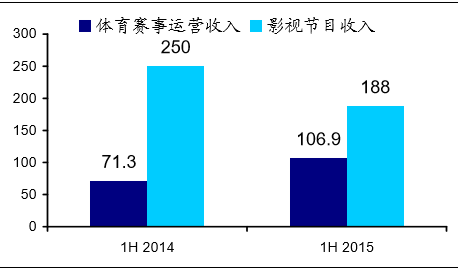 从智美体育的年报中可以看出,公司的营业收入主要来自于赛事运营和影视节目。在2012年前后,影视制作一直是主要收入来源,但自公司开始全面布局体育产业后,赛事运营以每年超100%的速度高速增长。虽然2015上半年集团收入同比减少了约8.2%,但智美的赛事运营收入还是同比增加了约49.9%。