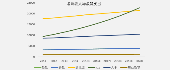 中国人均收入水平增高,整体受教育水平提升,对教育的重视程度越来越高,因而在教育方面的消费及投资将显著增加。