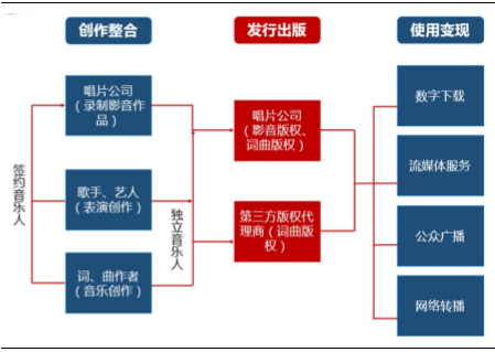 音乐创作的基本变现是通过对版权的结算来实现的。由于每次交易每次结算的方式过于麻烦,也很难实时统计结算,过去很长的时间里,唱片公司代行交易结算,在一定时间段里统一与著作权人结算,并以自己强大的下游渠道资源帮助版权人进行内容分发,获取更多的报酬。