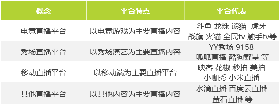 电竞直播平台:通过评论、弹幕等与用户实时交互,以电竞游戏直播内容为主的直播平台。