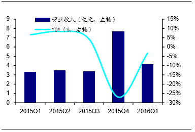 2015Q1-2016Q1天威视讯营业收入情况
