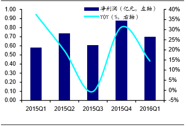 2015Q1-2016Q1天威视讯净利润情况