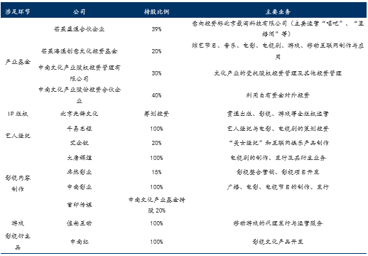 中南重工文化产业领域参股/收购公司一览