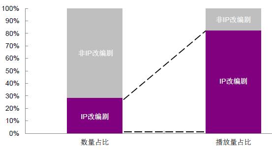文学/IP改编剧成为头部内容概率较大;从国内来看,2015年20%的IP剧贡献80%的播放量;重量级IP有更大的可能性成为头部内容。国外来看,2014-15年欧美和亚洲地区电视剧获奖剧集中,文学作品改编剧集占全部奖项比例的40%。2015年及2016年上半年国内几大视频平台独播剧播放榜前几名一半以上是IP改编剧。2015年20%的IP剧贡献80%的播放量(%)