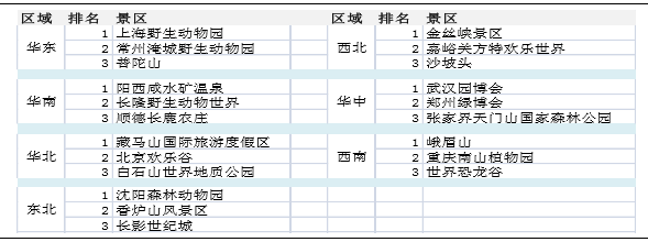 根据同程旅游五一景区门票预订数据显示,华东地区网络预订三大热门景区为:上海野生动物园、常州淹城野生动物园和普陀山;华南地区网络预订三大热门景区为:阳西咸水矿温泉、长隆野生动物世界、顺德长鹿农庄;华北地区网络预订三大热门景区为:藏马山国际旅游度假区、北京欢乐谷、白石山世界地质公园。此外,东北、西北、华中和西南地区网络预定前三位景区大多数为主题公园、动物园及生态旅游等。综合比较,其分类的全国七大区域热门景区中乐园类景区和生态旅游类景区占优势,反映了小长假周边休闲游已经成为大多数人的首选。