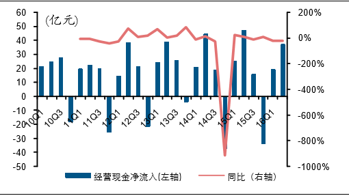 啤酒行业分季度经营现金净流入及变化