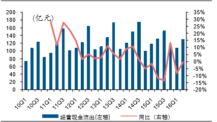 啤酒行业分季度经营现金流出及变化