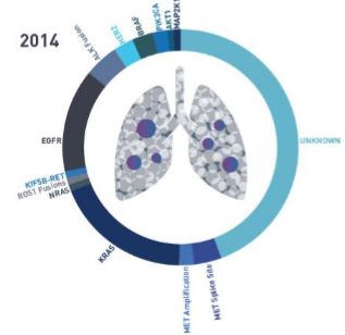 表皮生长因子受体(EGFR)突变埃罗替尼、吉非替尼、阿法替尼等;原癌基因K-ras突变EML4-ALK重组色瑞替尼、alectinib等BRAF基因突变达拉非尼等;MET扩增卡博替尼等;新生血管生成VGEF贝伐单抗等;免疫疗法PD-1:OpdivoPD-L1:MPDL-3280ACTLA4:Yervoy