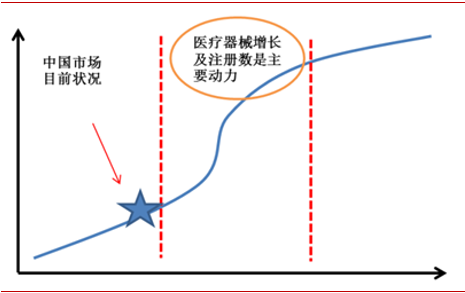 国内CRO企业服务内容主要集中于医药研究,而医疗器械CRO参与者较少,市场尚待开发,我们认为CRO由药品领域延伸到器械领域是一个逐步发展过程。从行业发展阶段来看,医疗器械CRO处于市场导入期,未来在器械行业发展和产品注册的推动下,有望迎来快速发展。
