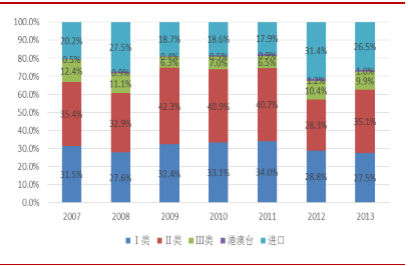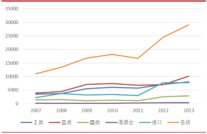 2007-2013年我国医疗器械注册类型