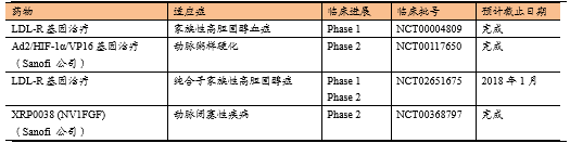 行业研究治疗动脉粥样硬化的靶点主要是低密度脂蛋白(LDL)和载脂蛋白(apolipoprotein,apo)。LDL-R基因突变的病人,血浆LDL增高。临床试验中,逆转录病毒介导的LDL-R基因治疗的病人,血浆LDL胆固醇降低了近30%。apoB100是极低密度脂蛋白(VLDL)和低密度脂蛋白(LDL)的载脂蛋白之一。临床二期试验中,通过反义DNA技术,使得LDL降低了40%。