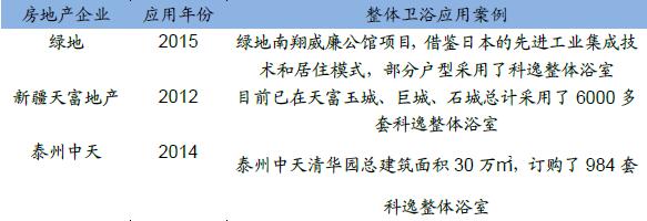 抓住新生代年轻人和老年人需求,将整体卫浴引入楼盘。早在2012年,万科惠州的双月湾度假村项目已引入4128套科逸整体浴室。2015年,为满足新一代年轻人追求生活品质的需求和新一代老年队对高品质居住要求的需求,万科在杭州的“光璟”楼盘引入一体化卫浴。该楼盘的盛大开发,受到了市场的巨大关注与追捧。