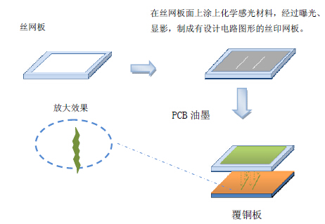 早期PCB油墨主要为热固化油墨与紫外光固化油墨,该两种油墨无法显影,仅能用丝网模版进行印刷,在线路板上直接形成图形,形成的图像解像度较低。其中,热固化油墨能获得精度最高至180微米的图形,主要用于标记制作;紫外光固化油墨能获得精度到150微米的图形,主要用于对解像度要求较低的单面PCB板。