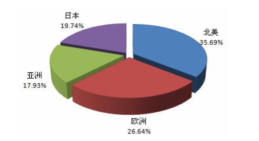 从国际碳纤维需求区域的总体分布情况来看,近年来世界碳纤维需求最多的地区为北美,该地区需求量约占全球总需求量的35.69%;其次是欧洲,需求量约占26.64%;日本和亚洲其他国家分别占19.74%和17.93%。近年来国际碳纤维需求区域总体分布图如下: