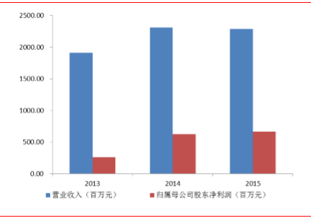 公司主要从事染料及染料中间体的生产经营与服务,主营染料为中高端蒽醌染料,目前拥有超过4万吨的蒽醌染料产能,在蒽醌结构分散染料和还原染料市场保持35%的高市场份额。受产品价格下跌影响,公司业绩也受到一定影响。但由于公司产品本身属于中高端产品,加上运营策略和品牌优势,2015年公司实现营业收入22.9亿元,同比下降1%,归属于母公司股东净利润超过6.6亿元,同比增长6.30%。公司在项目建设上保持增长,报告期内建成8000吨还原染料改造项目;连云港赛科固废处置项目投产;开建年产30万吨硫磺制酸项目。同时,还对江苏道博化工有限公司进行并购,涉足溶剂染料领域。