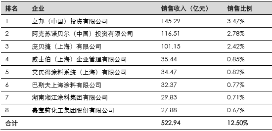 集中度有所提升。据中国产业信息网统计,2007-2010年我国涂料行业CR10呈逐年下降趋势,分别为12.5%、12.3%、11.6%、10.1%,低门槛导致行业竞争激烈,集中度低下。在行业标准提高叠加增速放缓后,市场集中度有所提升,到2015年我国涂料行业CR8约为12.5%,CR10约为13.7%。