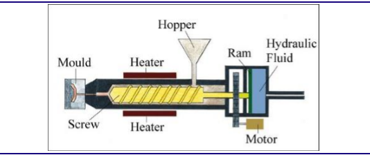 注射成型技术是生产非连续纤维增强复合材料的主要方法之一,原料一般选择短切、长纤维增强热塑性复合材料粒料(LFT)或团状模塑料(BMC),其主要工艺原理是将物料从料斗中加入料筒,物料在螺杆驱动下向前输送并压实,同时受到加热和剪切作用,逐渐发生塑化、熔融和均匀混合,最后物料在高压、高速下通过喷嘴注射到磨具型腔内,固化冷却定型后得到制品。