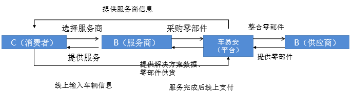 线上资源包括车易安网页客户端、微信公众号,手机客户端APP。线下资源包括500余家汽车服务商、400余家汽车零部件经销商。