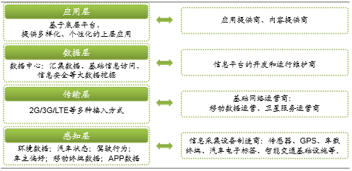 这一理念实际遵循了依据“物联网”的思路。互联网公司通过提供数据层服务,取得处于感知层的汽车、交通基础设备、车载应用等主体搜集到的信息,并对信息进行大数据分析、获得信息优势,从而进一步介入物联网最顶层的应用层,以获取更广阔的业务发展空间。
