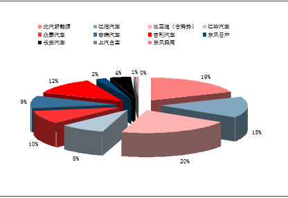 乘用车:纯电动,前三为北汽/江淮/比亚迪,长安/吉利加大投入,市占率提升;插电式,比亚迪/上汽主导,上海补贴政策调整及上汽供应链优化,上汽市占率由17%提升至21%,比亚迪由79%下降至72%,。