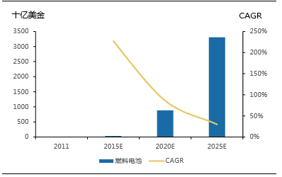 受益于汽车智能化和电子化的趋势,汽车动力革命也呈现出明显加速。具有能量密度高、充电快、自重轻、清洁环保等诸多优势的燃料电池开始逐步进入规模化应用阶段。