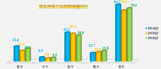 1、货车二季度销量79.5万辆,同比增幅为4.27%