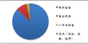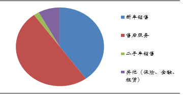 传统4S销售模式下新车销售收入占比虽大、但利润占比逐步下行,而收入占比不高的售后服务在利润占比中逐步提高。