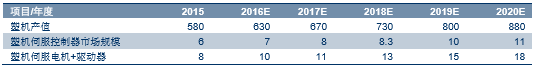 随着对塑机能效、精度的提升需求,伺服系统在该行业的应用将增速将高于塑机行业本身的增速。“十三五”末塑机产值约增长50%左右,但预计其专用伺服电机和驱动器规模将实现翻倍增长。