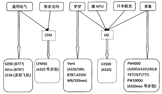 与军用航发不同,民用航发随着民用飞机一起在全球范围内自由贸易,从而形成国际性的民用航发