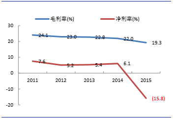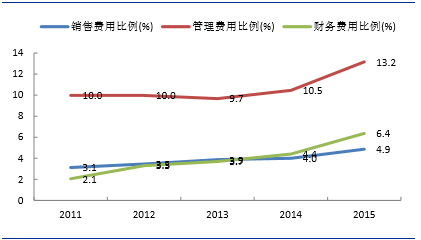 2015年,由于国家没有进行新的核电站招标活动,导致行业营业收入大幅下降20%,净利润更是下滑近1000%至-22亿元。其中中国一重一家公司便巨亏18亿元。核电业务占比较高的公司受影响最为严重,比如台海核电,2015年净利润只有2710万元,不足承诺利润的10%。管理费用由于固定资产折旧占销售比例上升而大幅增长,同时借款所带来的财务费用也逐年升高。