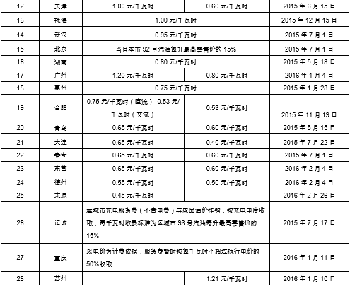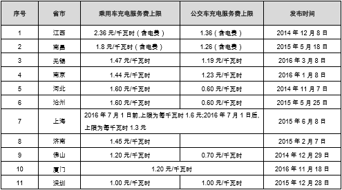 目前充电服务费率主要由各地发改委单独设定。自2014年12月至今,全国主要城市已基本划定了费率的上限。