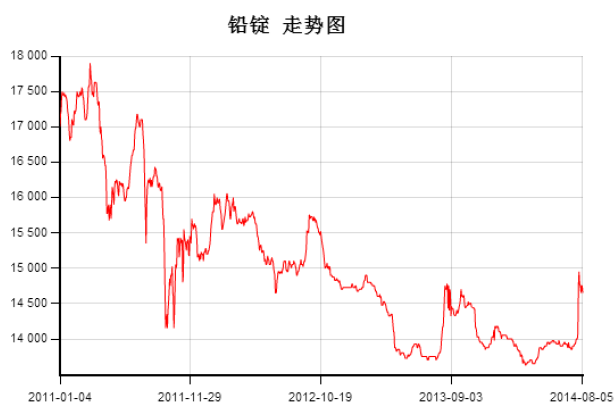 随着我国经济和社会发展进程加快,对铝的需求日益增长,20 世纪90 年代以来,我国原铝消费以年均16%的速度递增。2004 年我国原铝消费量已占全球消费量的24%46。2013 年我国全年累计原铝产量2,195.64 万吨,同比增长11.6%47。目前我国已成为世界最大的原铝生产国与消费国。但2011 年以来受我国经济发展放缓的影响铝锭价格持续下降。2014 年二季度,受国内需求好转拉动和铝企阶段性停产缓解产能过剩局面两方面因素影响,电解铝价格呈现出V型走势。
