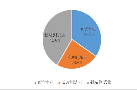 随着国内集成电路产业的发展,IC设计、芯片制造和封装测试三业的格局也正不断优化。总体来看,IC设计业所占比重呈逐年上升的趋势。2014年,IC设计业所占比重已接近35%。同时,芯片制造业比重为23.6%,封装测试业所占比重则进一步下降至41.7%。2014年中国集成电路产业各价值链结构