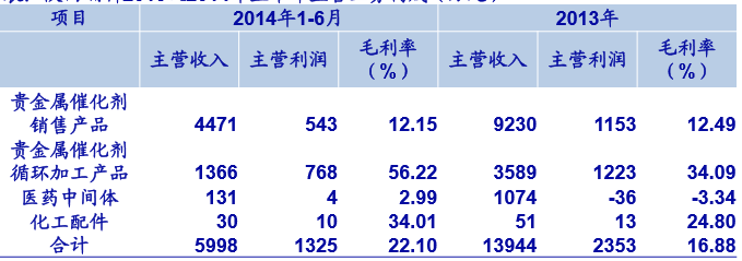 公司主营业务为贵金属催化剂、医药中间体和化工配件。公司承担多项国家重点科研和试制项目,包括石化系统重点科研项目、陕西省省级科研项目以及医药行业领域的多项试制项目,广泛应用于医药化工、石油化工及精细化工等领域。