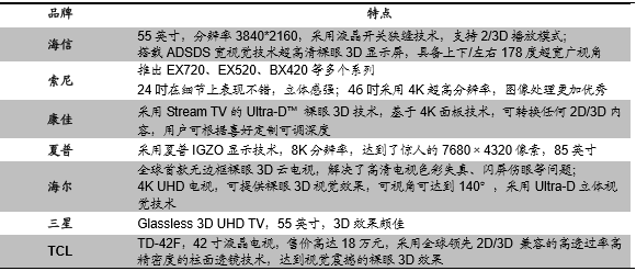 裸眼3D电视品牌及特点