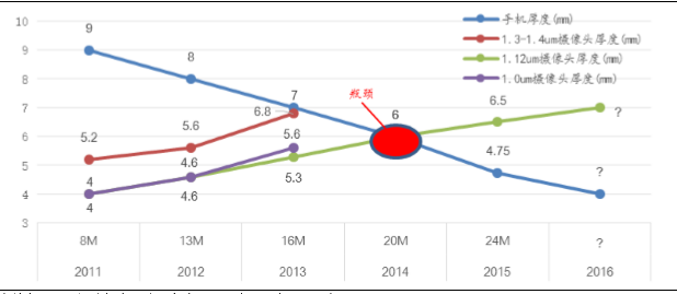 手机像素的增长和手机厚度之间瓶颈