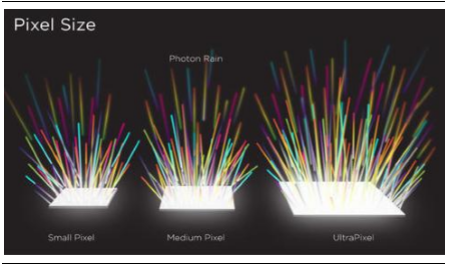 近年来手机像素提高受到阻碍。严格意义上来说,手机摄像头像素的提高不等同于拍照质量的上升。高像素意味着在同一个感光芯片上像素点数目增多,意味着更大的输出尺寸,即像素越高,放大照片所造成的失真越小。但是拍照效果很大程度与感光元件每个像素点的尺寸有关。像素点尺寸越大,每个像素点所能接收到的“光子雨”也就越多。而在一块既定面积的感光芯片上,像素数目的增多势必会减少单个像素点的尺寸,进而影响整个芯片接收到的“光子雨”总数。