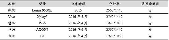 部分使用OLED显示屏的智能手机