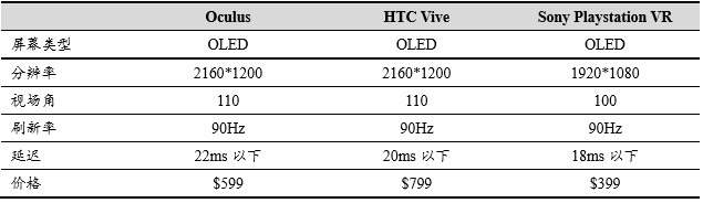 当前主流三大VR设备均采用OLED作为显示屏