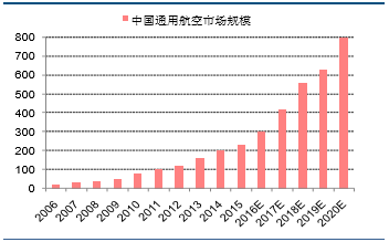 近年来我国通用航空产业规模不断扩大,截至2015年底,通用机场超过300个,通用航空企业281家,在册通用航空器1874架,2015年飞行量达73.2万小时。根据2016年发布的《国务院办公厅关于促进通用航空业发展的指导意见》,通用航空业经济规模超过1万亿元,到2020年初步形成安全、有序、协调的发展格局。