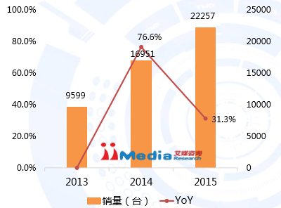 2013-2015年国产工业用机器人销量