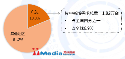 未来全球机器人应用市场主要增量在中国,在中国很大一部分增量在广东,将迎来巨大的发展前景。据统计,2015年广东省机器人保有量4.14万台,占全国18.8%,占全球2.49%。其中新增需求约为1.82万台,占全国四分之一,占全球6.9%。