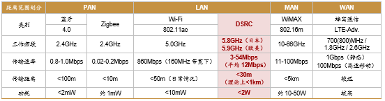 DSRC的优势在于:专属通信频段:以美国为例,联邦通信委员会(FCC)为DSRC在5.9GHz频率上分配了75MHz的频谱带宽,根据其发布的OrderFCC03-324,规定该频段专门用于智能交通通信服务;快速建立连接、低延迟:由于汽车行驶过程中移动速度很快,往往“瞬间”驶过道路设施或快速超车,因此车联网所需的通信技术要能够在极短的时间内建立两个终端之间的网络连接。DSRC能够满足这一要求,并可以实现毫秒级信息延迟,保障通信稳定性;可以应对恶劣天气:DSRC在雨天、雾天、雪天都可以正常工作,信息传输性能不受恶劣天气影响;安全应用优先:DSRC能够为行车安全方面的数据传输提供优先通道,从而保障其他应用不会在关键状况下影响安全通信;安全与隐私保障:DSRC支持通信认证与加密,能够保护用户隐私。