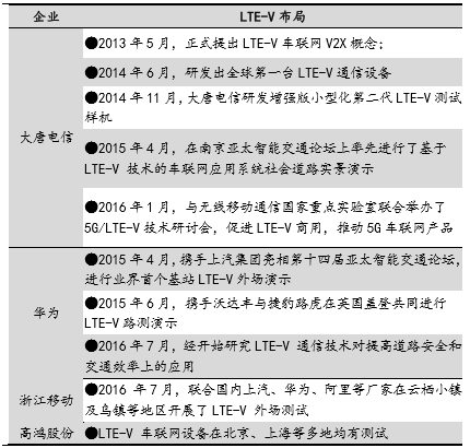 我国产业链各方LTE-V技术布局进展