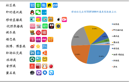 社交平台种类繁多,百家争鸣。研究报告社交需求广泛存在于生活中的各个方面,因此各类型的社交平台针对不同需求的用户群体相继开发。社交平台根据服务的场景主要可分为社区类、即时通讯类、娱乐类、匿名类、婚恋类、微博/博客类以及职场类,全面涉及日常生活中的各个领域,其中社区类和即时通讯类的社交应用数量最多。